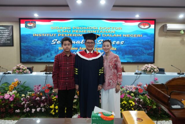 “Puji Tuhan, atas izin dan penyertaan-Nya, saya bisa menyelesaikan studi doktoral ini. Terima kasih yang tak terhingga kepada Istri tercinta, Rizya Ganda Davega, serta seluruh keluarga besar yang tak henti memberikan doa dan dukungan. Juga kepada Rektorat, para promotor, dan tim penguji IPDN yang telah membimbing saya dengan penuh kesabaran dan keilmuan yang luar biasa,” ucap Joune Ganda.