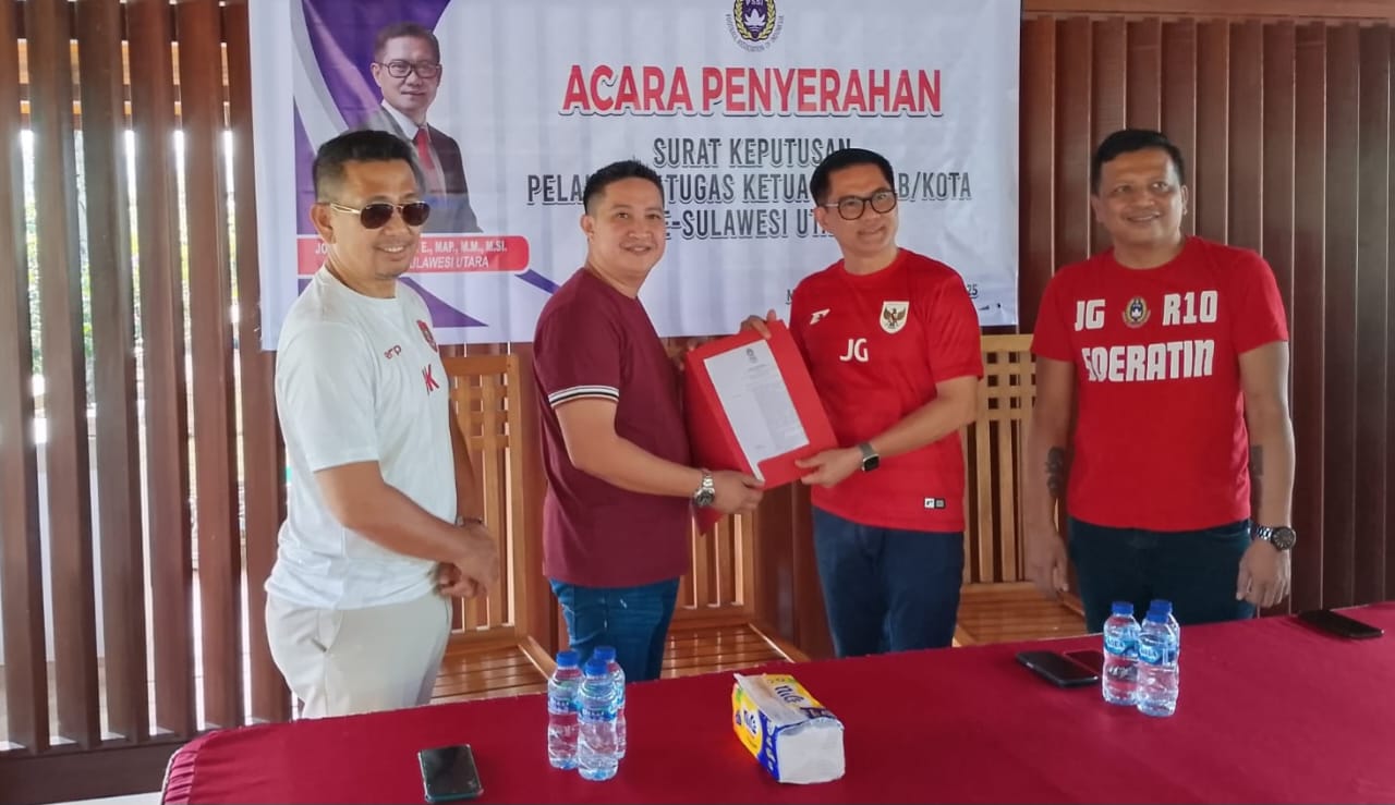 Diketahui, SK Plt ini diserahkan oleh Joune Ganda didampingi oleh Sekretaris Asprov PSSI Sulut Vendry Rorimpandey dan Wakil Ketua Hengky Kawalo, Kadispora Minut serta pengurus PSSI Sulut lainnya, Selasa(30/10/2025) di Villa Rae Desa Kaima.